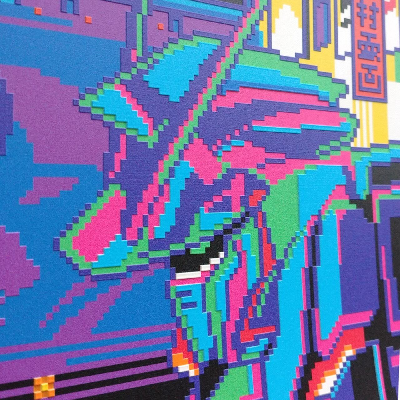 お台場にある実物大のユニコーンガンダムを現代の仏像として捉え、遠景には東京湾を挟んだ大井埠頭の夜景が描かれています。夜空浮かぶのは「機動戦士ガンダムUC」の物語に登場する架空の宇宙植民地であるスペースコロニー「ラプラス」(の想像図であるスタンフォード・トーラス)です。